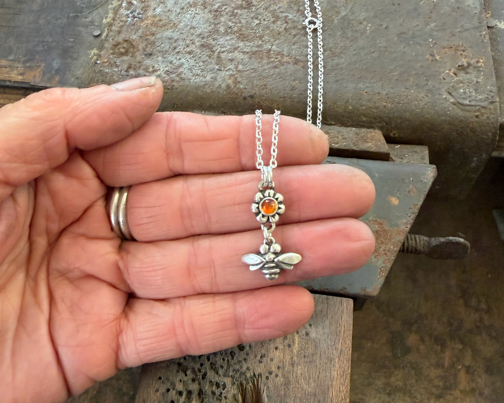 - I sculpted the little bee and flower by hand and then had them cast in .925 sterling silver.